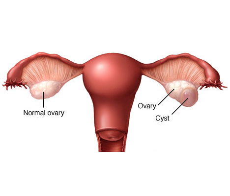 An ovarian cyst is a fluid-filled sac within the ovary. Often they cause no symptoms. Occasionally they may produce bloating, lower abdominal pain, or lower back pain. If the cyst either breaks open or causes twisting of the ovary severe pain may occur. This may result in vomiting or feeling faint. The majority of cysts are, however, harmless.